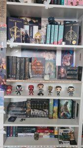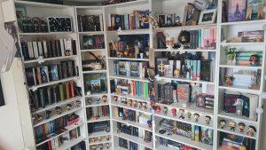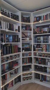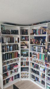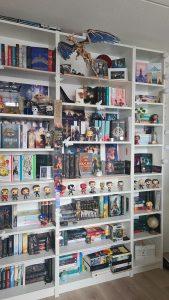 Mijn boekenkast is ingedeeld op auteur, maar ook weer niet. Alle boeken van dezelfde auteur staan bij elkaar, maar het staat niet op alfabetische volgorde. Ook verander ik de indeling van mijn kast regelmatig, hierdoor krijgt mijn kast elke keer weer een andere uitstraling en staan er weer andere boeken in de spotlight. Ik heb wel mijn funko-pops die in de kast staan, op afkomst staan. Marvel bij Marvel, Disney bij Disney enz.