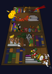 De boekenkasten blijven binnenkomen, en dat vinden wij ‘fantastisch’! Deze keer laat Suzanne Janse vol trots haar planken zien. Bovenstaande illustratie is van de hand van Alex van Leeuwestijn.