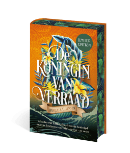 Klopt, bij De koningin van verraad van Danielle L. Jensen. We wisten eerst niet of dat kon in Nederland, maar de drukkers leren met ons mee en op een gegeven moment kon het dus. Ook dat mooie patroon op het linnen bij deel 1 en deel 2 van Daniel Jensen is zoiets dat gaandeweg mogelijk is geworden.