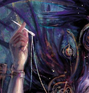 De nachtelijke hemel heeft mij altijd gefascineerd. Ik wilde zelfs sterrenkunde studeren, maar de enorme hoeveelheid wiskunde deed me in plaats daarvan besluiten aardwetenschappen te kiezen (waar ook veel, maar een haalbare hoeveelheid wiskunde aan te pas komt). Het favoriete wapen van het personage, een naald, werd met opzet gekozen: ik hou van naaien. Ik heb dit personage zelfs opnieuw gemaakt als cosplay voor evenementen als Elfia of Castlefest. Het zette mij steeds meer aan het denken over het kunstwerk. Waarom herstelt het personage de nachtelijke hemel? Bedreigt lichtvervuiling de sterren, of is er iets veel sinisters aan de hand? Het inspireerde mij om een roman te schrijven. De hoofdpersoon ziet er misschien niet zo flamboyant uit als die in het kunstwerk, maar ze delen een gemeenschappelijke drang om de sterren te beschermen. Dit kunstwerk overbrugt echt al mijn creatieve hobby’s, waardoor het mijn favoriete stuk is.”
