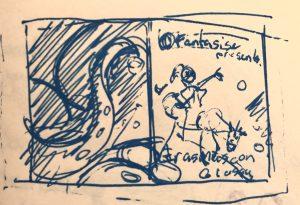 To figure that out, I started with thinking about different compositions and sketching them. Some of those sketches are just some very simple shapes (sometimes not even recognizable for the outside viewer), but for the artist it is very clear. Most of the time.
